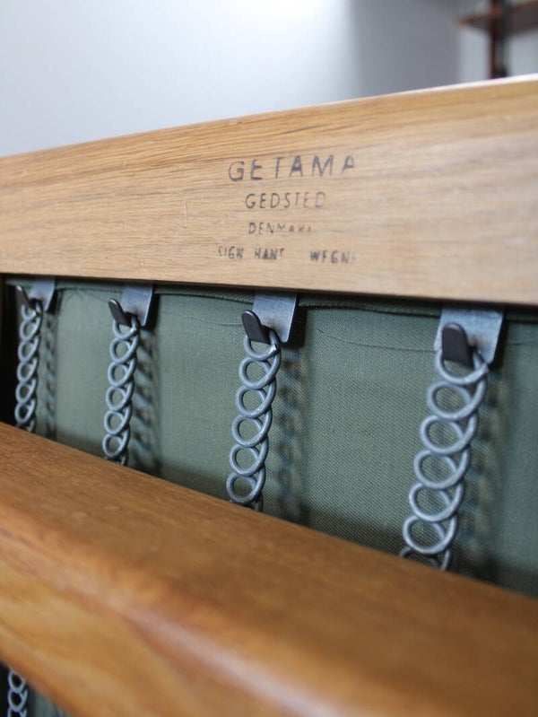 Vintage designbank, model GE-290, ontworpen door Hans J. Wegner en geproduceerd in Denemarken in de jaren ’60. Een tijdloos en iconisch ontwerp van één van de meest toonaangevende ontwerpers uit de Deense designgeschiedenis.