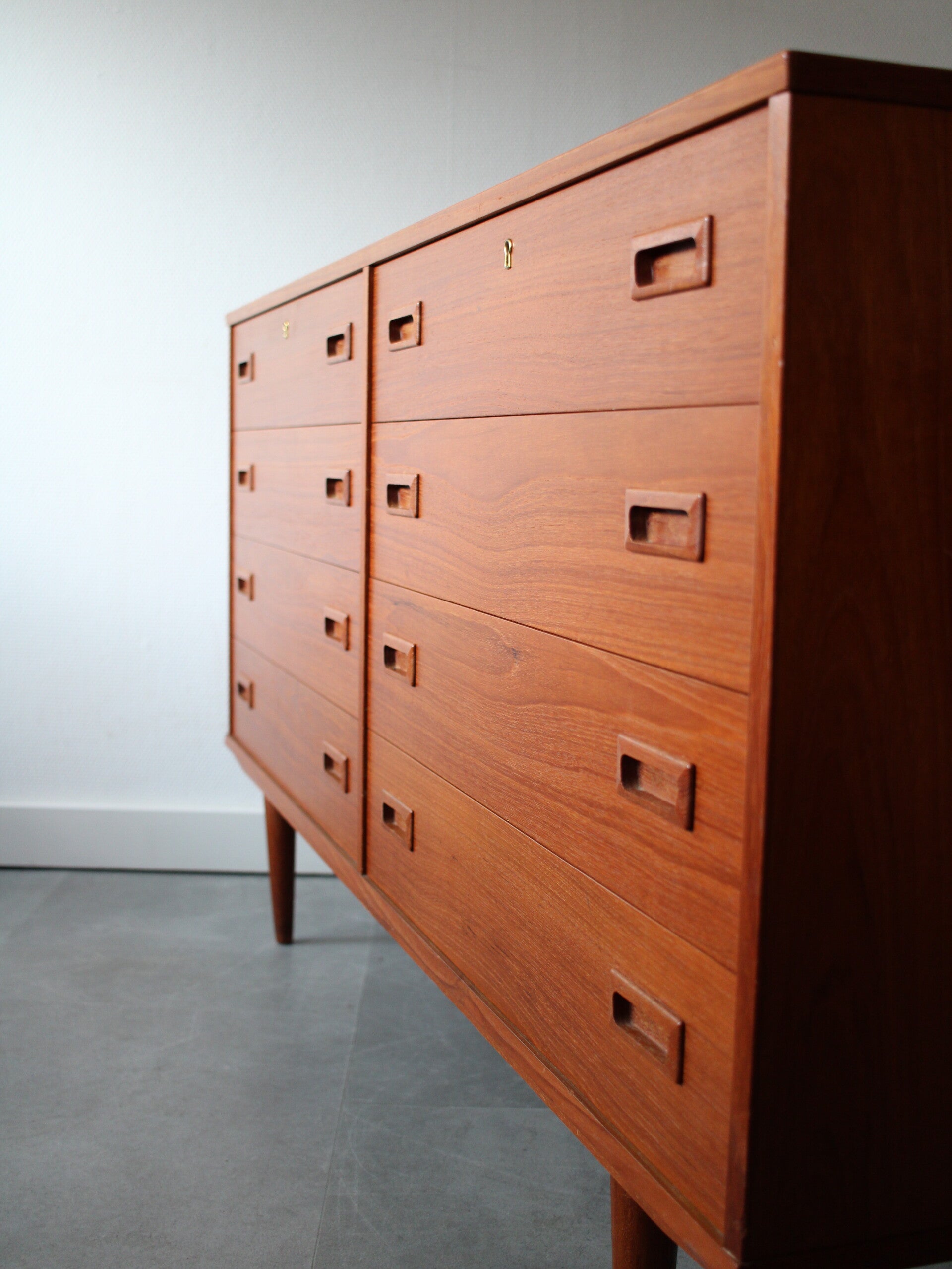 Vintage ladekast in teak ontworpen door Hundevad & Co. te Farso, Denemarken. De kast is gefabriceerd in de jaren 60/70 van de vorige eeuw. Een handgemaakt meubel van één van de bekendste Deense producenten van die tijd: Hundevad & Co.
