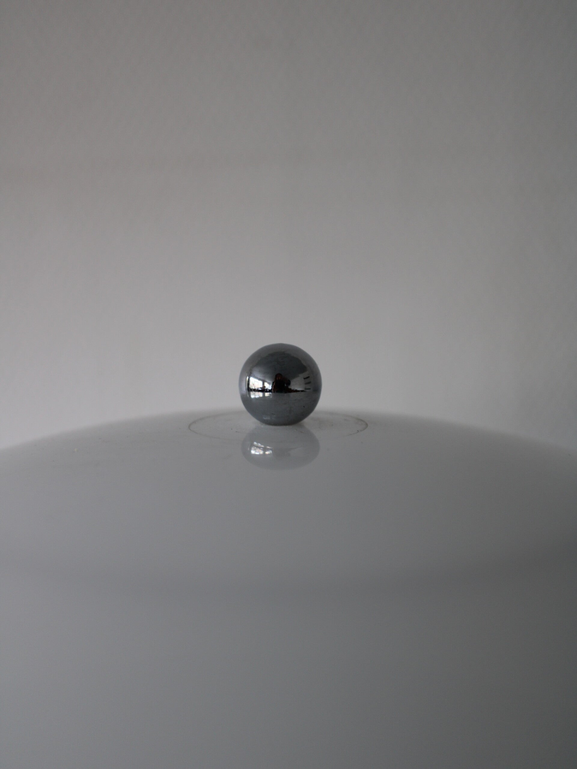 De Panthella vloerlamp is in goede staat, met minimale gebruikssporen. De lamp heeft een wit opaal acryl kap en een slanke, trompetvormige voet die zorgt voor een stabiele basis. Het diffuse licht creëert een warme en uitnodigende sfeer in elke ruimte.