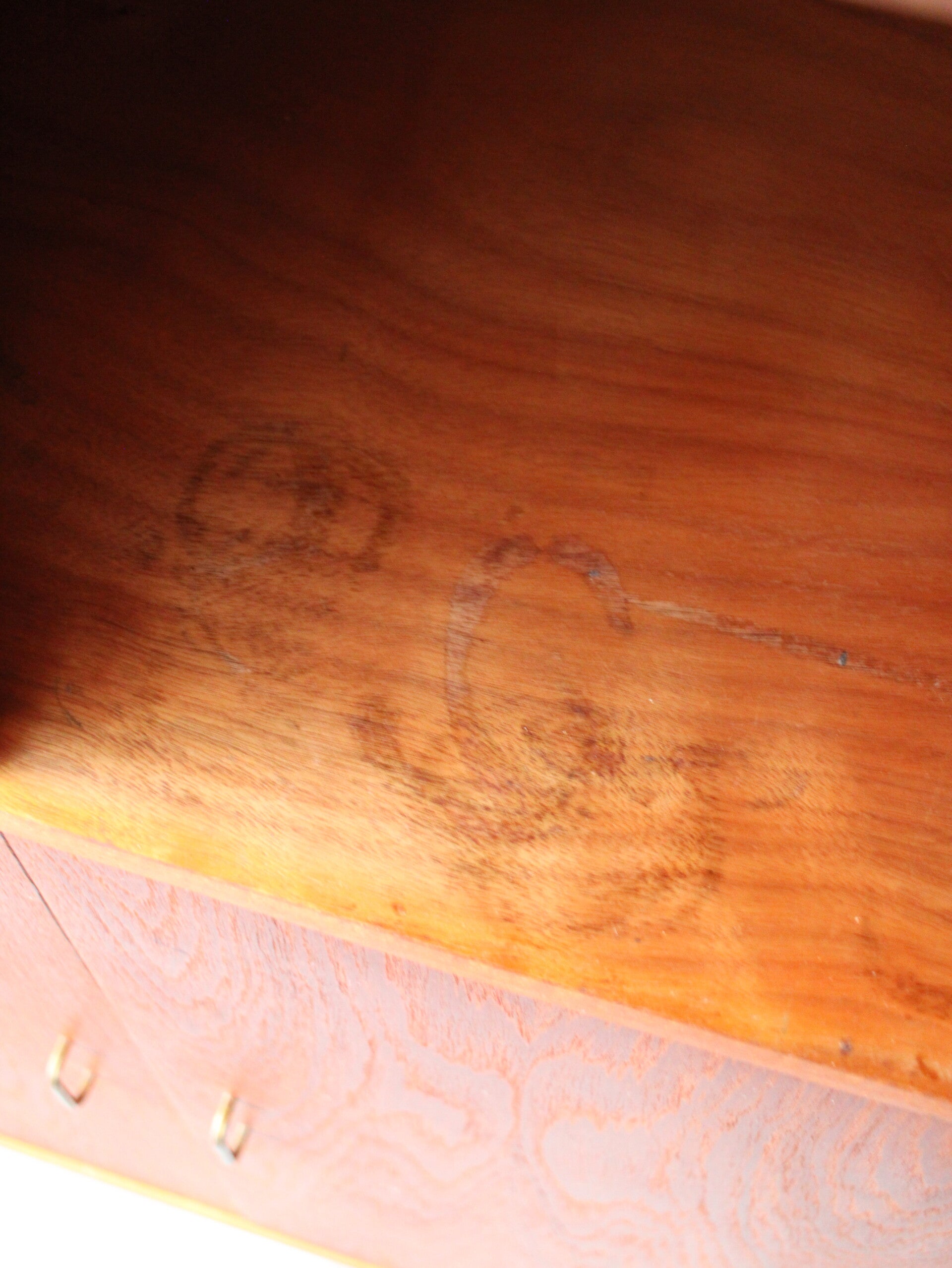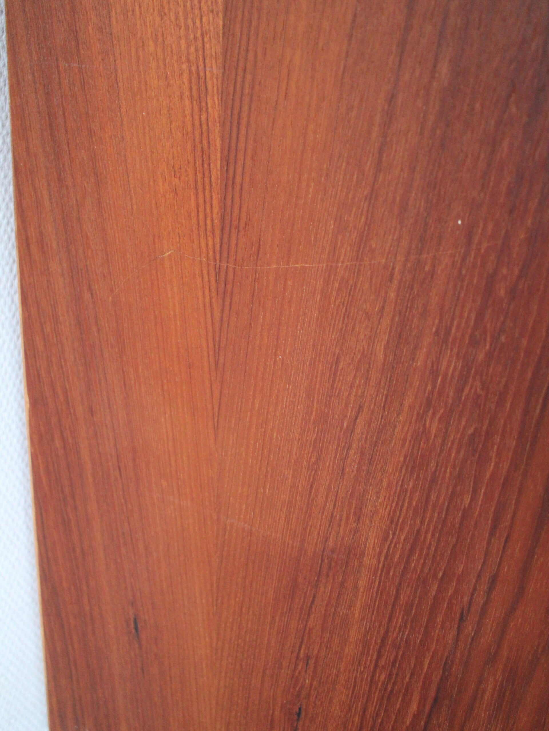 De kast is zorgvuldig gereinigd en behandeld met olie, waardoor de warme houtkleur weer mooi naar voren komt. Hij verkeert in een nette vintage staat met lichte gebruikerssporen passend bij de leeftijd. Eén van de pootjes is iets minder stevig, maar dit is in het dagelijks gebruik niet storend. De kast staat stabiel, alleen verschuiven wordt afgeraden. Aan de bovenkant van de kast is van ander hout.