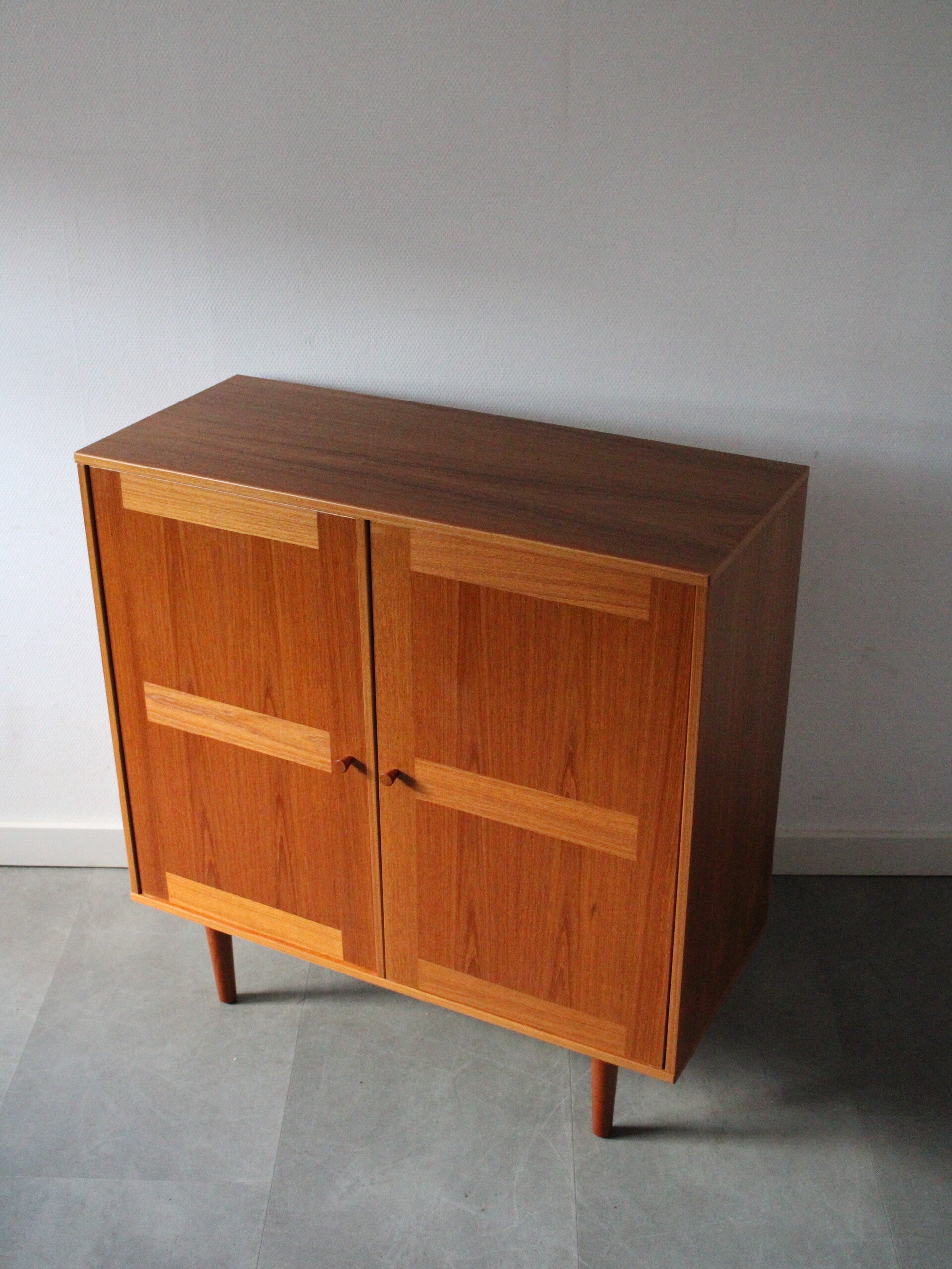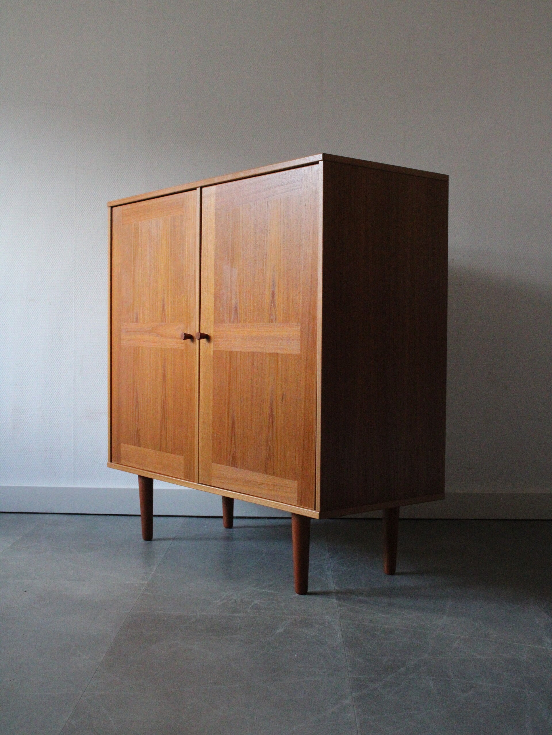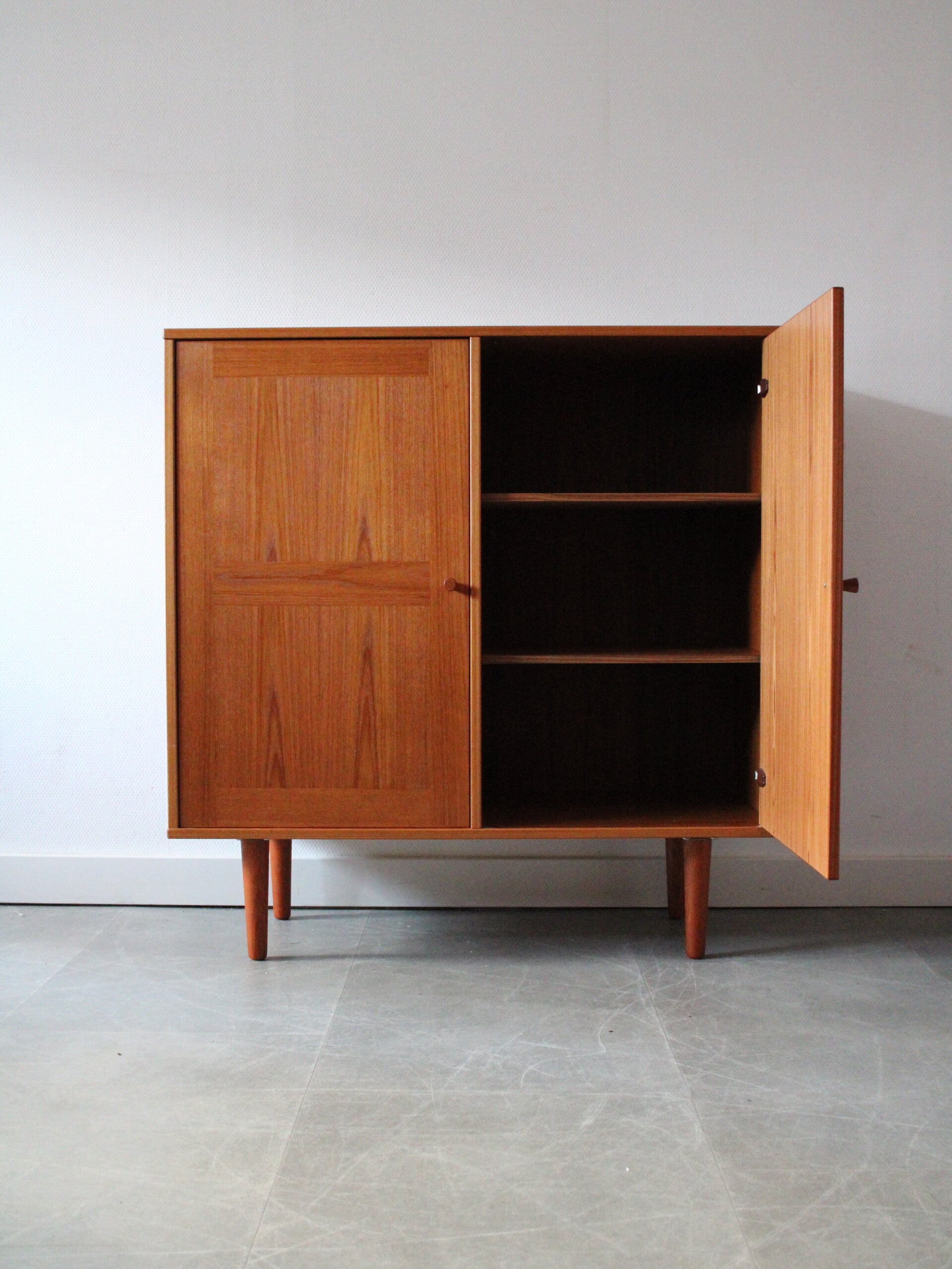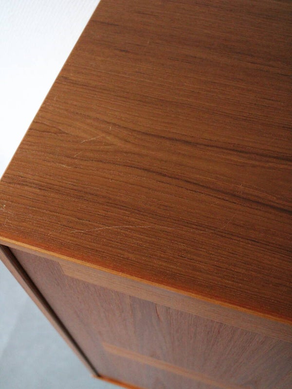 De kast verkeert in uitstekende staat, met slechts lichte gebruikssporen passend bij de leeftijd. Het meubel is volledig gereinigd en behandeld met een passende Deense olie, waardoor de warme kleur en het bijzondere houtpatroon prachtig tot leven komen.
