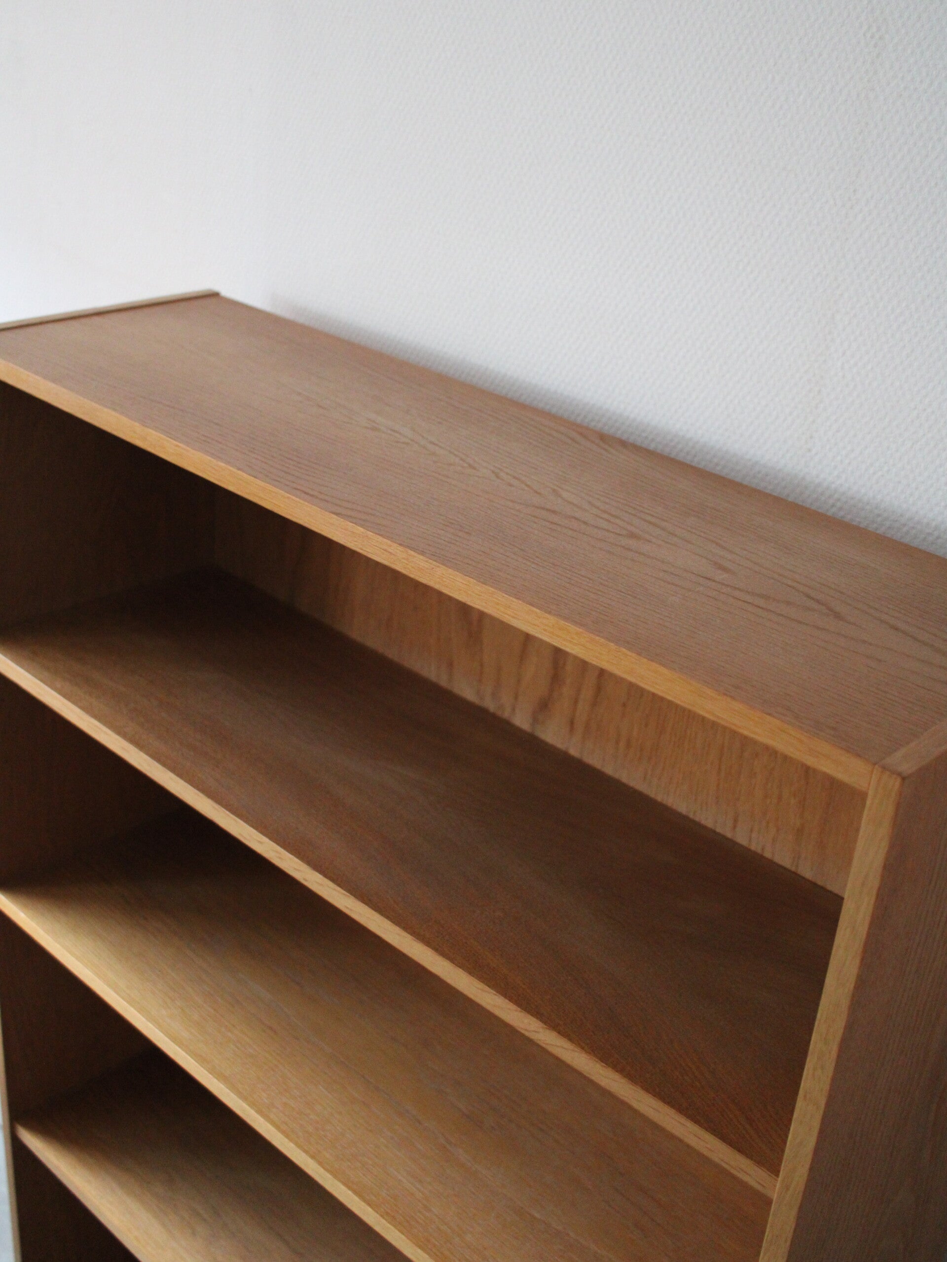 De boekenkast beschikt over drie legplanken, waarvan twee modulair te verplaatsen zijn. Hierdoor kun je de indeling eenvoudig aanpassen aan boeken van verschillende hoogtes of aan decoratieve objecten. De strakke lijnen en minimalistische vormgeving maken dit een veelzijdig meubelstuk dat moeiteloos aansluit bij zowel moderne als vintage interieurs.