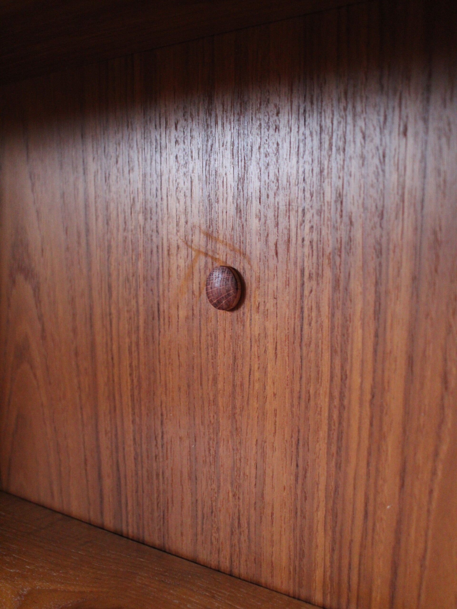 Het meubel is volledig gereinigd en behandeld met een passende Deense olie, waarna deze opnieuw is gepoetst. De kast verkeert in nette vintage staat met lichte gebruikssporen, passend bij de leeftijd. Deze dragen bij aan het authentieke karakter van het meubel.